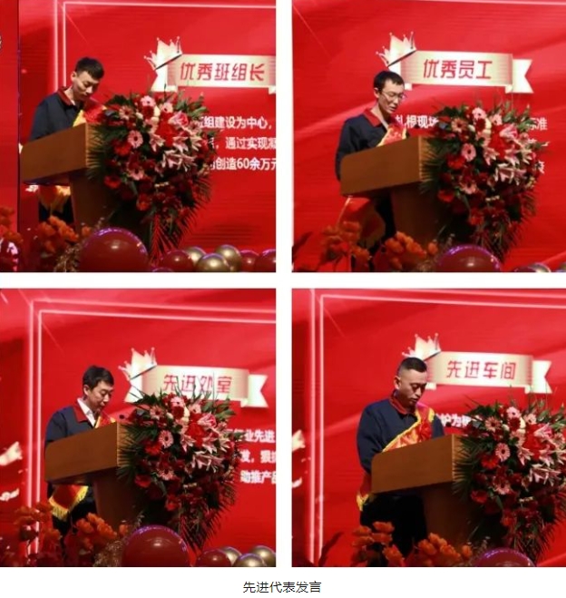 表彰會上,線材公司副總經(jīng)理董祖軍宣讀了《關于表彰2023年度先進集體和個人的決定》。受到表彰的先進集體和個人代表胸帶紅花、肩披緞帶,依次登臺領獎,接受公司授予的崇高榮譽。隨后,8名先進代表分別圍繞工作亮點、經(jīng)驗分享、下步目標、保障措施等方面作了慷慨激昂的發(fā)言,激勵與會人員在2024年繼續(xù)拼搏,共同奮進。